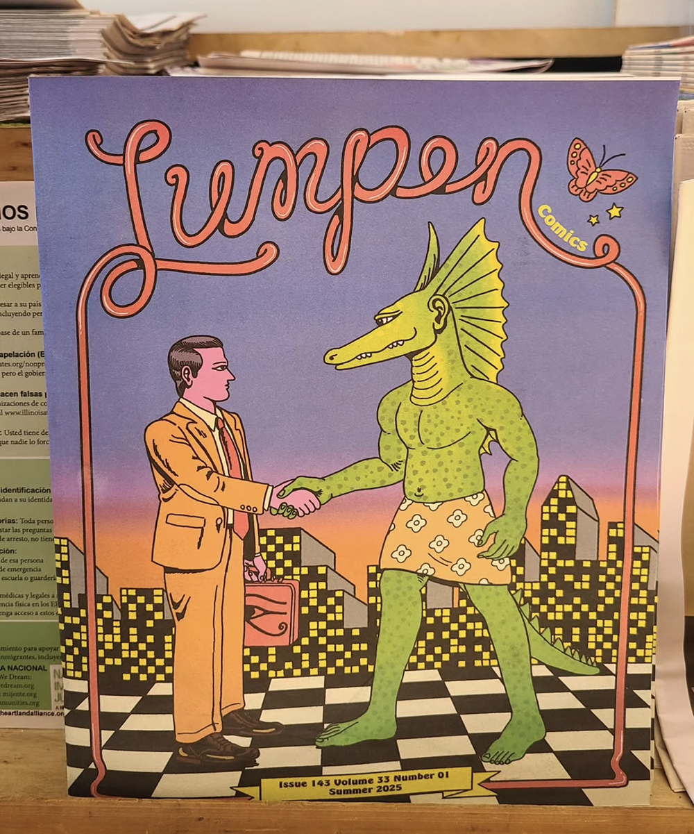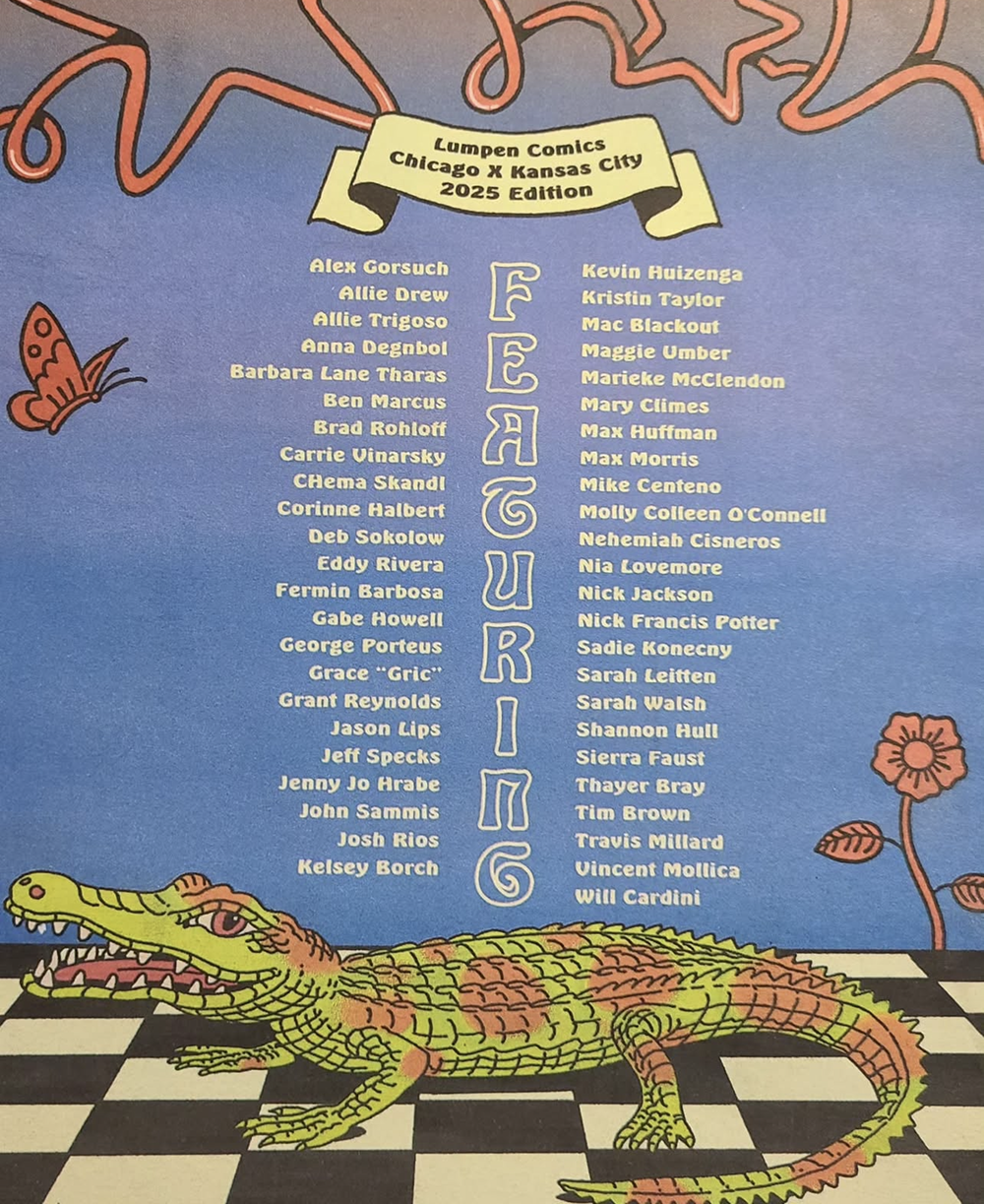 Ed Lumpen has been publishing Lumpen magazine out of Chicago since 1991. Ed saw Read the Room, the show Tim Brown, Thayer N G Bray, Jason Lips, and I co-curated at Charlotte Street Foundation last year, and invited us to collaborate with him and Joe Tallarico on editing this all-comics issue of Lumpen that brings together KC and Chicago cartoonists.